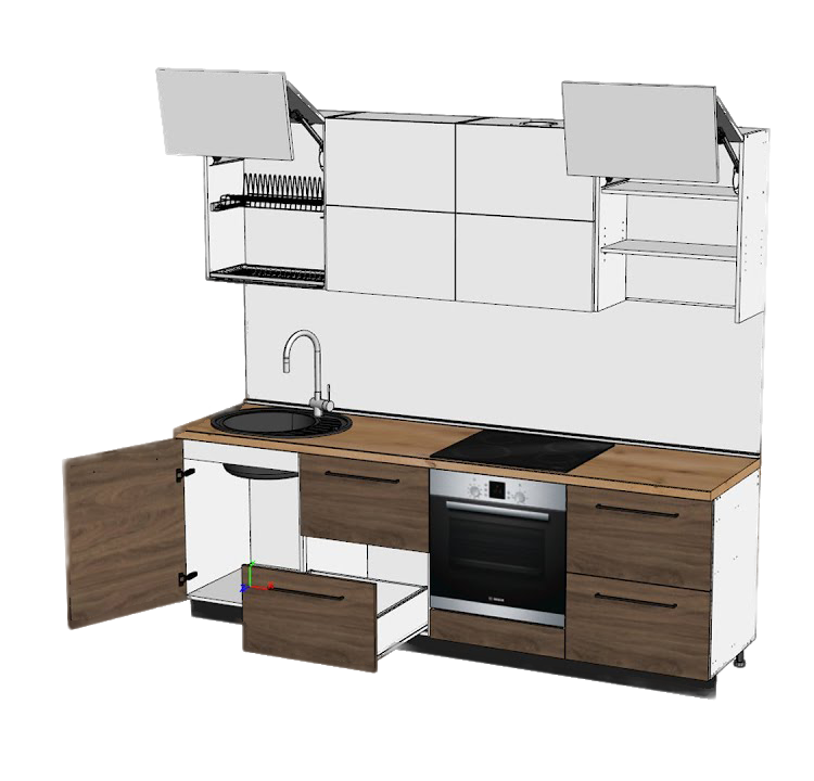 • Фурнитура: Blum, push-up, встроенная вертикальная ручка golo